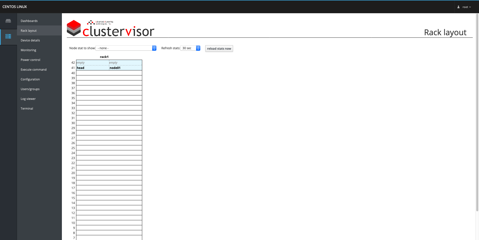 This same window is not just accessible from the Dashboard page, but can also be accessed from the Rack layout page by clicking on the names of the nodes presented or from the Device detail page by selecting the desired node from the Device drop-down menu. As well, the status of the monitored stats under the Monitoring tab mentioned earlier can be found on the Monitoring page, but will display the status for all the nodes in the cluster.