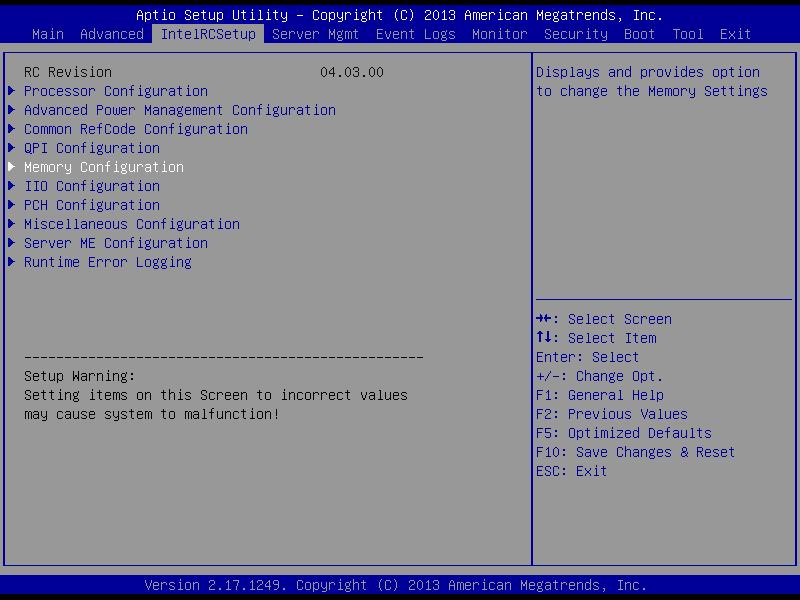 - Use the arrow keys to scroll over to IntelRCSetup at the top of the screen.